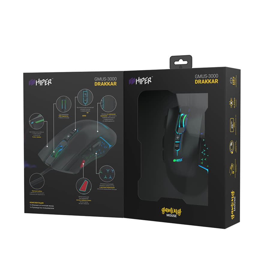 Мышь игровая HIPER DRAKKAR GMUS-3000, черный с логотипом компании - отличный способ заявить вашу корпоративную идентичность.