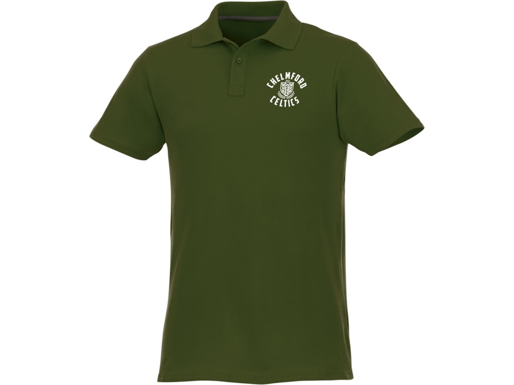 Мужское поло Helios с коротким рукавом, зеленый армейский с логотипом компании - отличный способ заявить вашу корпоративную идентичность.