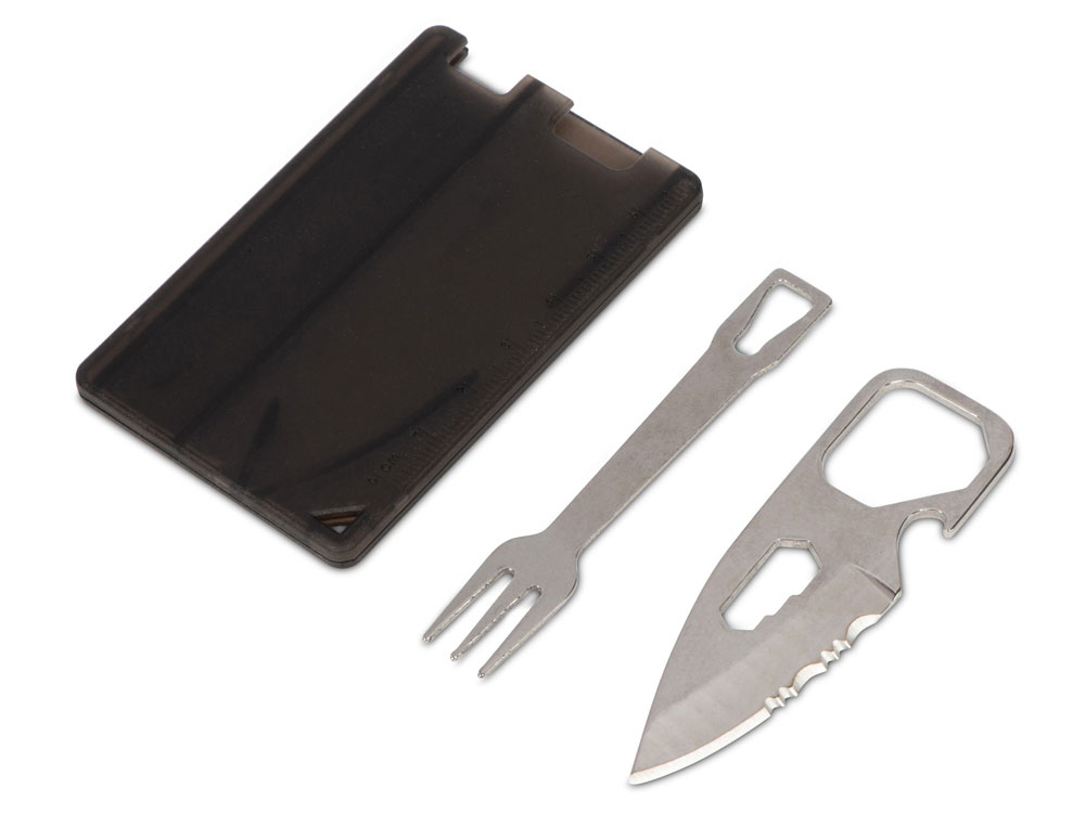 Главная ->Корпоративные подарки и рекламные сувениры на складе -> Подарки и сувениры для мужчин -> Инструменты ручные -> Мультиинструмент с ножом и вилкой Hungry, черный