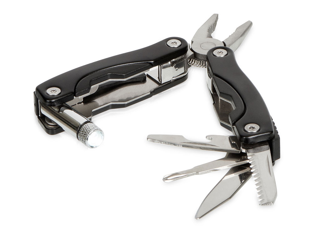 Мультитул Amass со светодиодным фонариком - Черный с логотипом компании - отличный способ заявить вашу корпоративную идентичность.