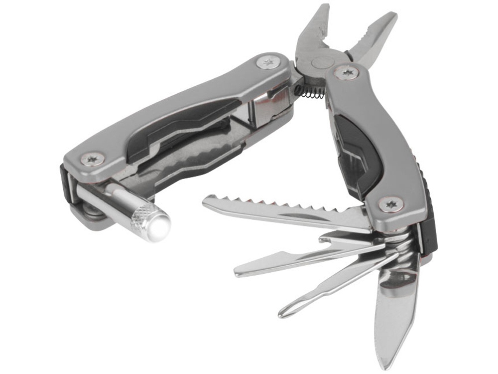 Мультитул Amass со светодиодным фонариком - Серебряный с логотипом компании - отличный способ заявить вашу корпоративную идентичность.