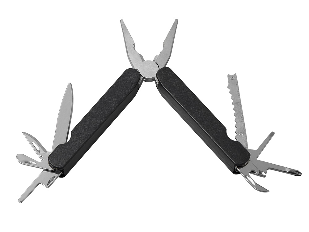 • Полноценный набор — пассатижи, ножи, отвертки, пила, открывалки