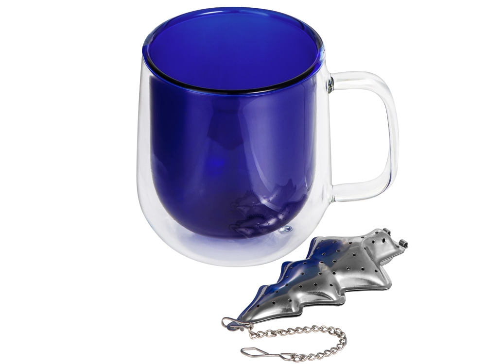 Набор Bergamot: кружка и ситечко для чая, синий с логотипом компании - отличный способ заявить вашу корпоративную идентичность.