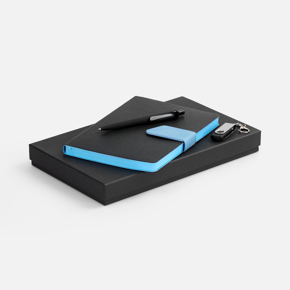 Главная ->Корпоративные подарки и рекламные сувениры на складе -> Ежедневники для работы -> Наборы с ежедневниками -> Набор Boom Memory, черный с голубым