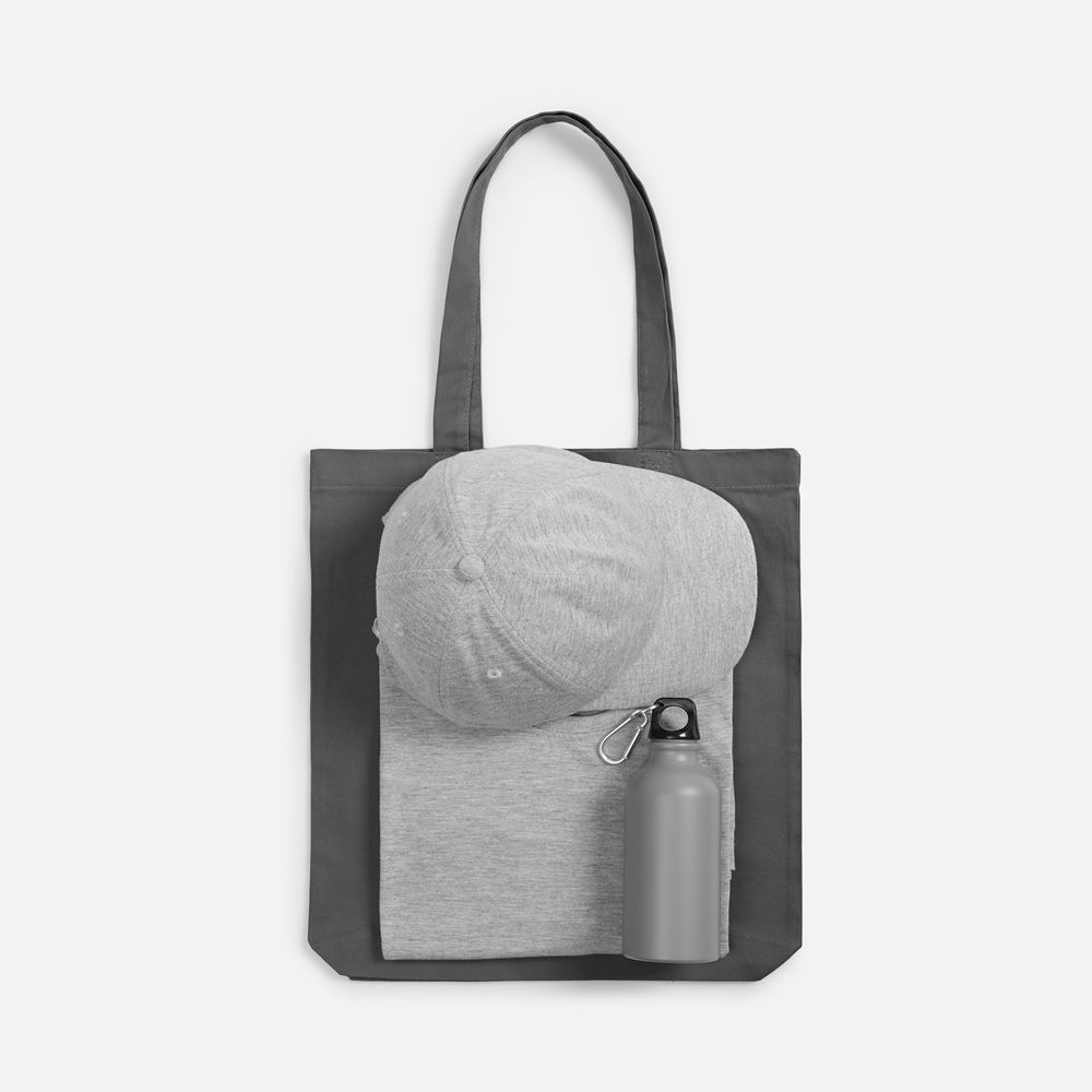 Материал: футболка - хлопок 100%, гребенная пряжа (пенье), плотность 160 г/м?; джерси; бейсболка - полиэстер, 75%; хлопок, 25%, плотность 170 г/м?; джерси; бутылка - алюминий; крышка - пластик; сумка - хлопок 100%, плотность 220 г/м?; саржа