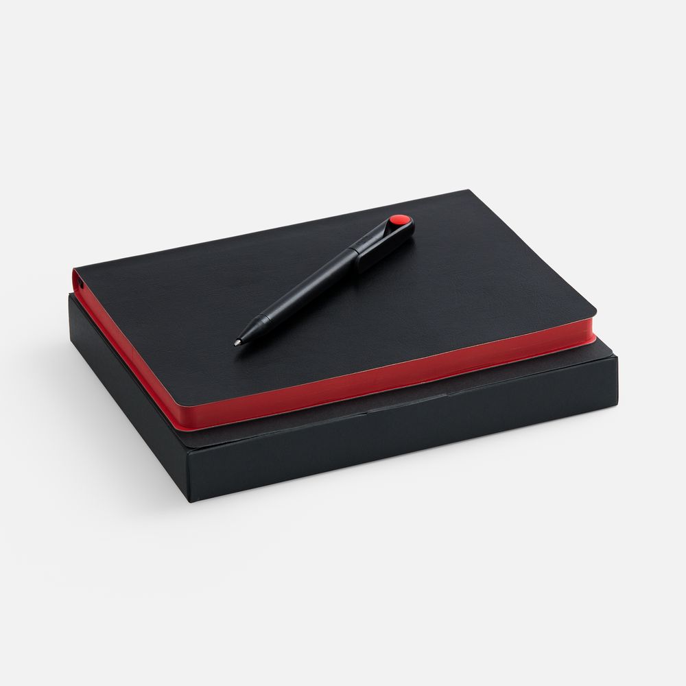 Набор Doppio, черный с красным с логотипом компании - отличный способ заявить вашу корпоративную идентичность.