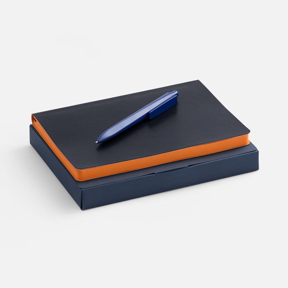 Набор Doppio, синий с оранжевым с логотипом компании - отличный способ заявить вашу корпоративную идентичность.