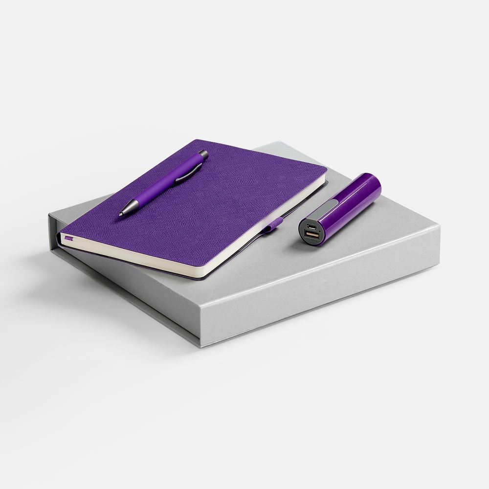 Набор Lungo Energy, фиолетовый с логотипом компании - отличный способ заявить вашу корпоративную идентичность.