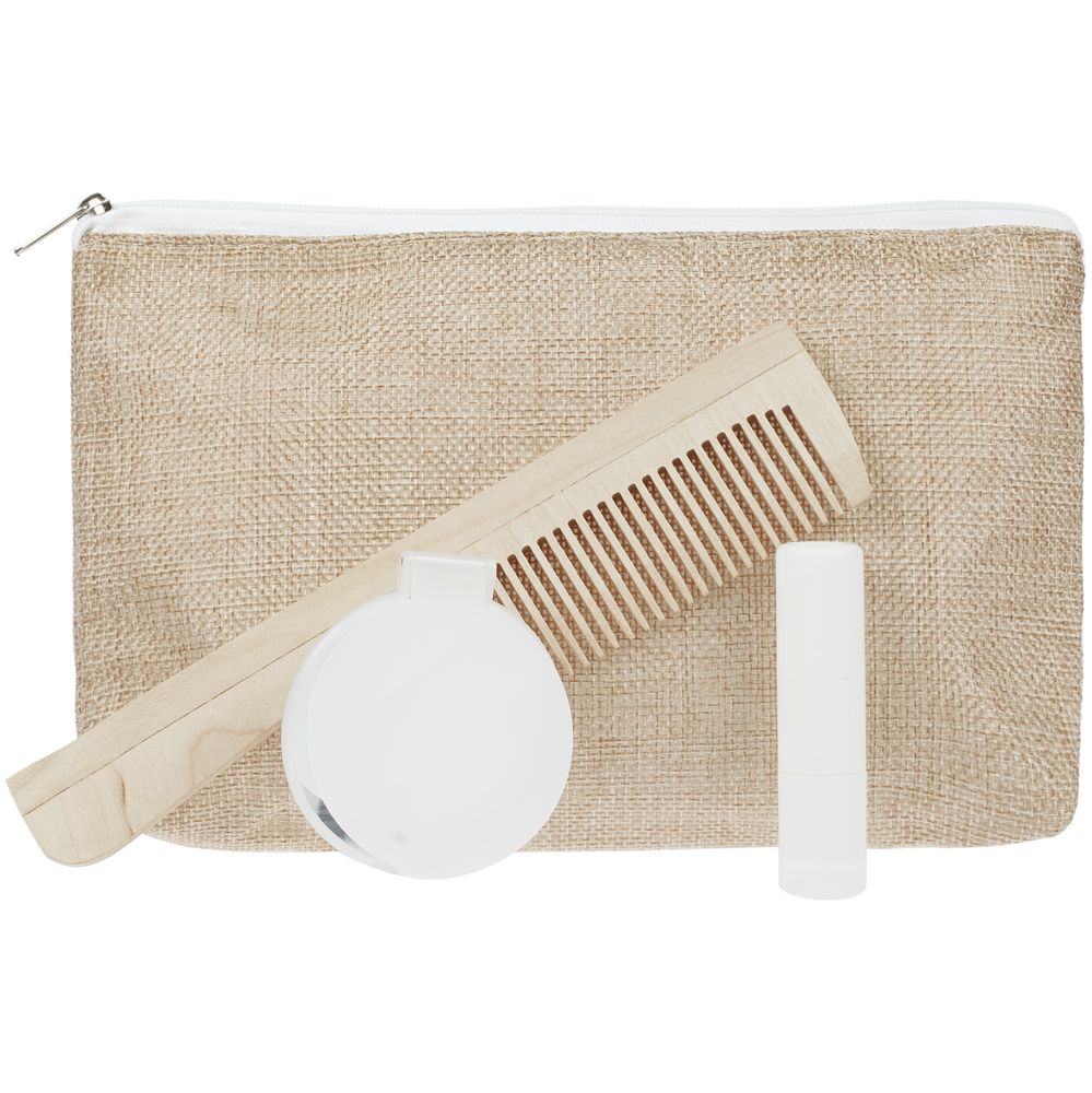 Размеры: помада: 1,8x1,8x6,7 см; расческа: 19,3х4,4х0,5 см; зеркало: 6x6x0,5 см; косметичка: 23х13х4 см