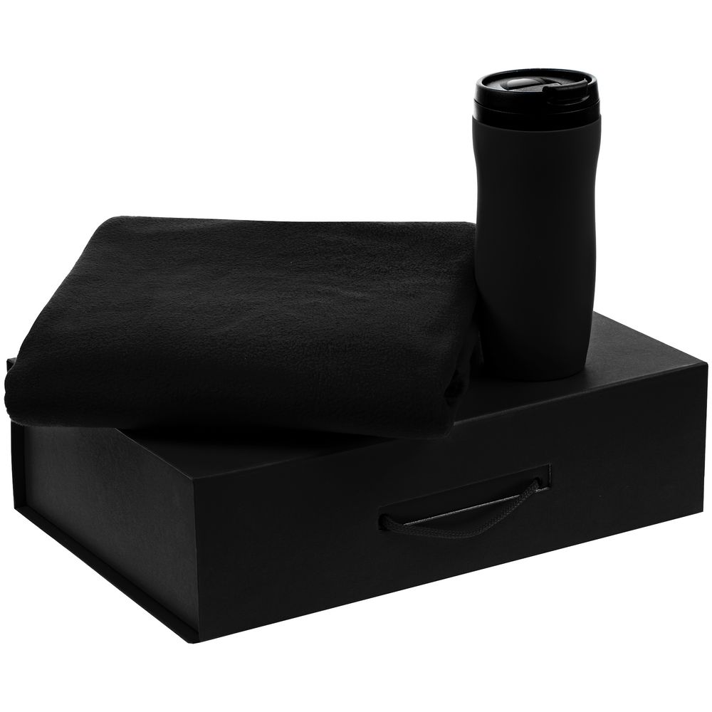 Материал: термостакан - пластик, крышка, внутренняя колба; нержавеющая сталь, корпус; покрытие софт-тач; плед - флис, плотность 180 г/м?; коробка - переплетный картон; наполнитель - бумага