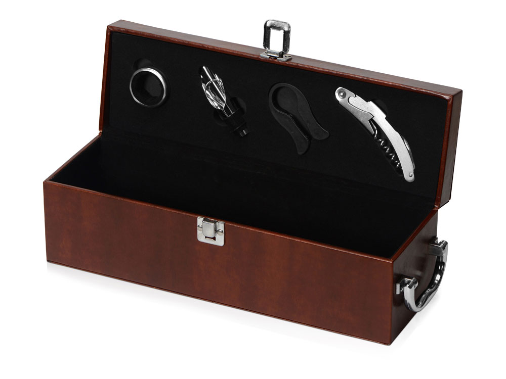 Компания «Эклектика BY» осуществляет нанесение логотипа на сувенирную продукцию: Набор аксессуаров для вина в подарочной коробке Fabrizio, коричневый. Арт. 424044