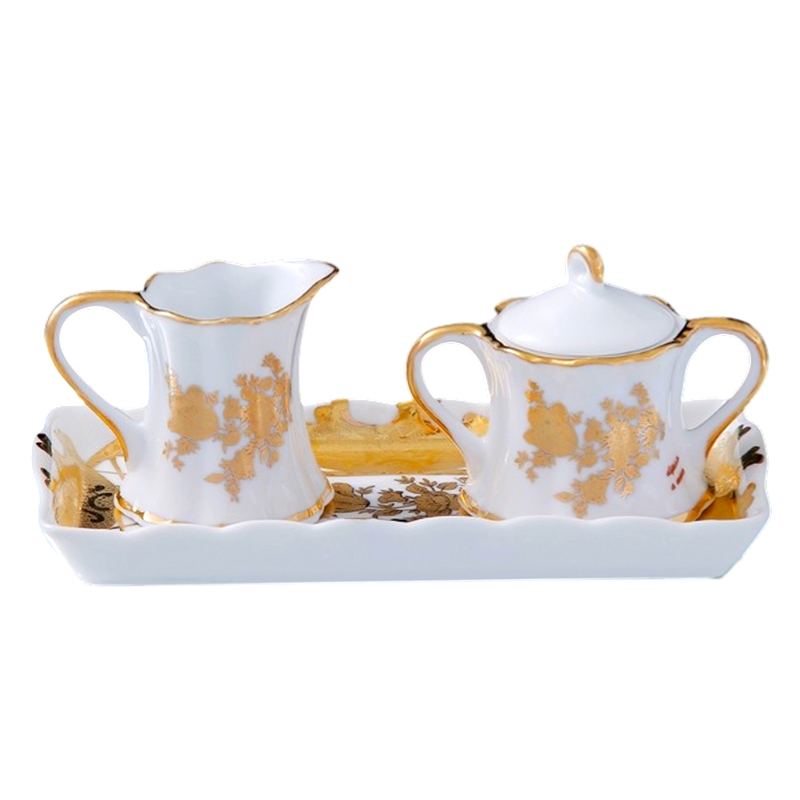 Набор "Мелисса" включает элегантный молочник, сахарницу и блюдце, выполненные из высококачественной керамики или фарфора. Изделия украшены нежным и изысканным дизайном с мотивами мелиссы или растительных орнаментов, что создает атмосферу уюта и гармонии. Молочник идеально подходит для подачи молока или сливок к кофе и чаю, а сахарница — для хранения сахара или сладостей. Блюдце служит удобной подставкой для сахарницы или для сервировки десертов. Этот набор станет прекрасным дополнением к сервировке стола .