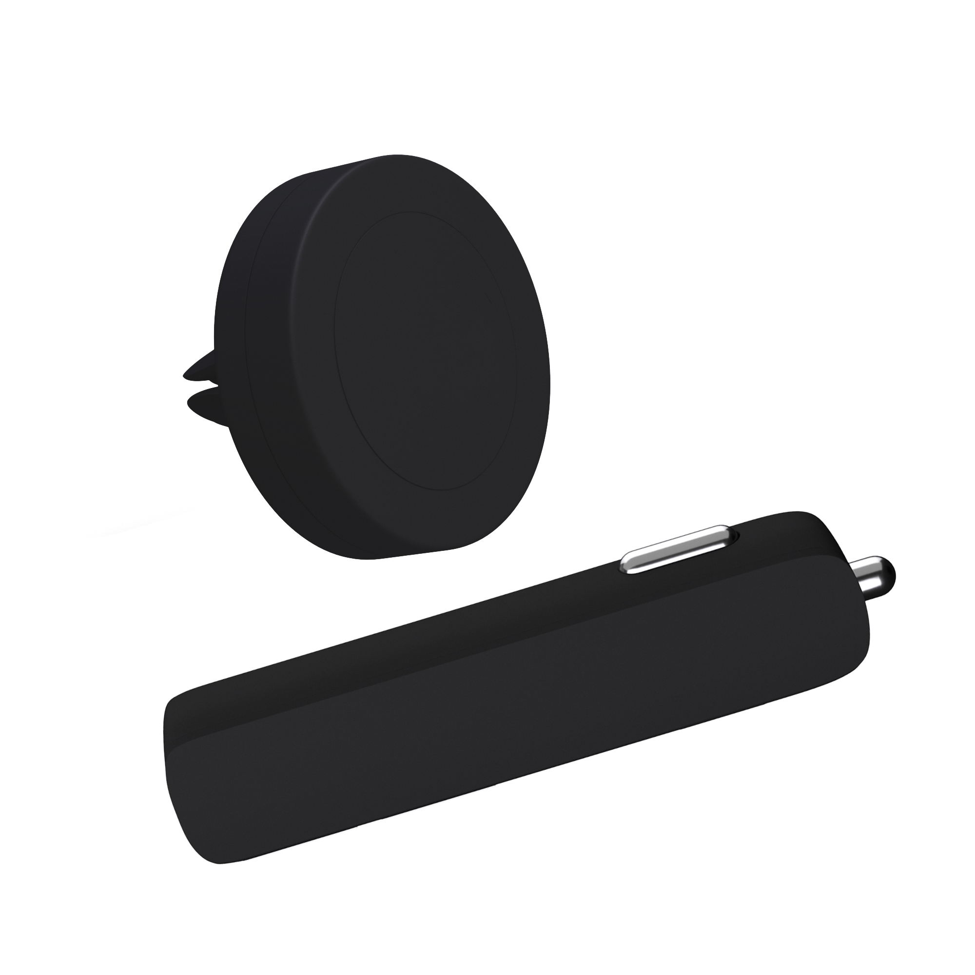 Набор автомобильное зарядное устройство "Slam" + магнитный держатель для телефона "Allo" в футляре, черный, покрытие soft touch
