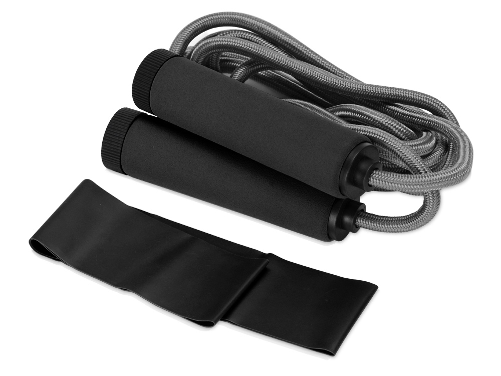 Набор для фитнеса Balance с лентой и скакалками, черный с логотипом компании - отличный способ заявить вашу корпоративную идентичность.