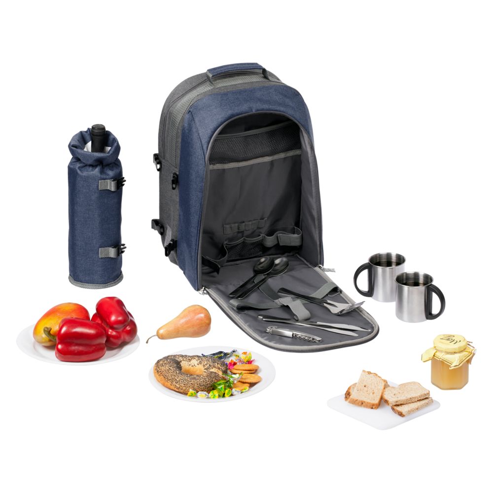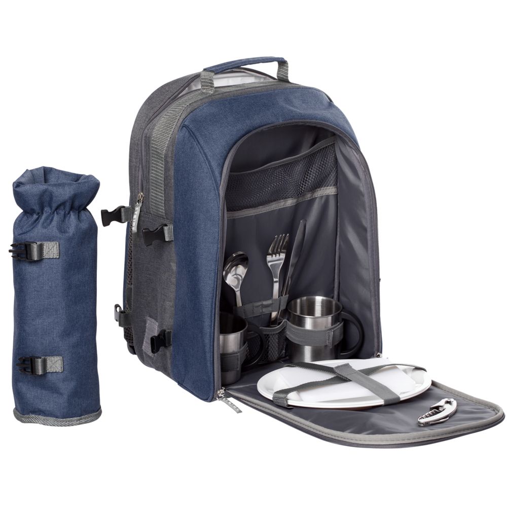 Главная ->Корпоративные подарки и рекламные сувениры на складе -> Активный отдых и спорт -> Аксессуары для пикника и барбекю -> Набор для пикника Fridag на 2 персоны, темно-синий с серым
