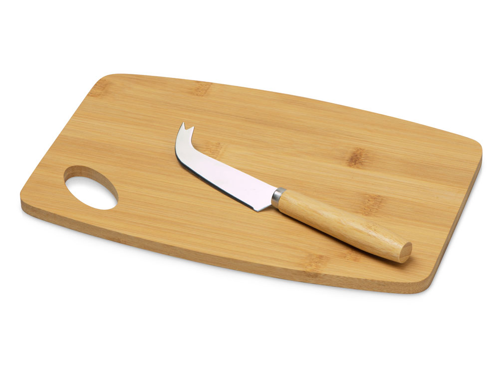 Набор для сыра с ножом и доской из бамбука с логотипом компании - отличный способ заявить вашу корпоративную идентичность.