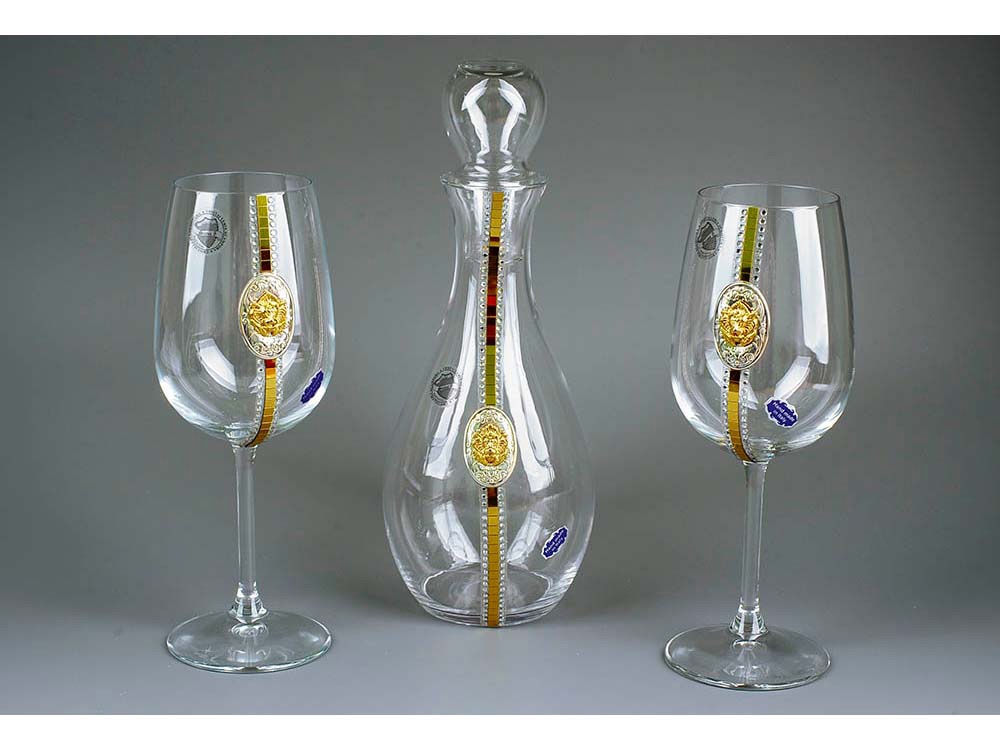 Набор для вина "Львиное сердце" включает изысканный графин объемом 1 литр, два бокала по 500 мл с кристалами.Графин выполнен из высококачественного стекла с изящной формой, подчеркивающей силу и грацию льва — символа мужества и достоинства. Бокалы украшены сверкающими кристаллами,которые придают им особый блеск и делают каждое застолье особенным. Этот стильный набор идеально подойдет для ценителей вина и станет великолепным украшением праздничного стола или отличным подарком для любителей изысканных аксессуаров.
