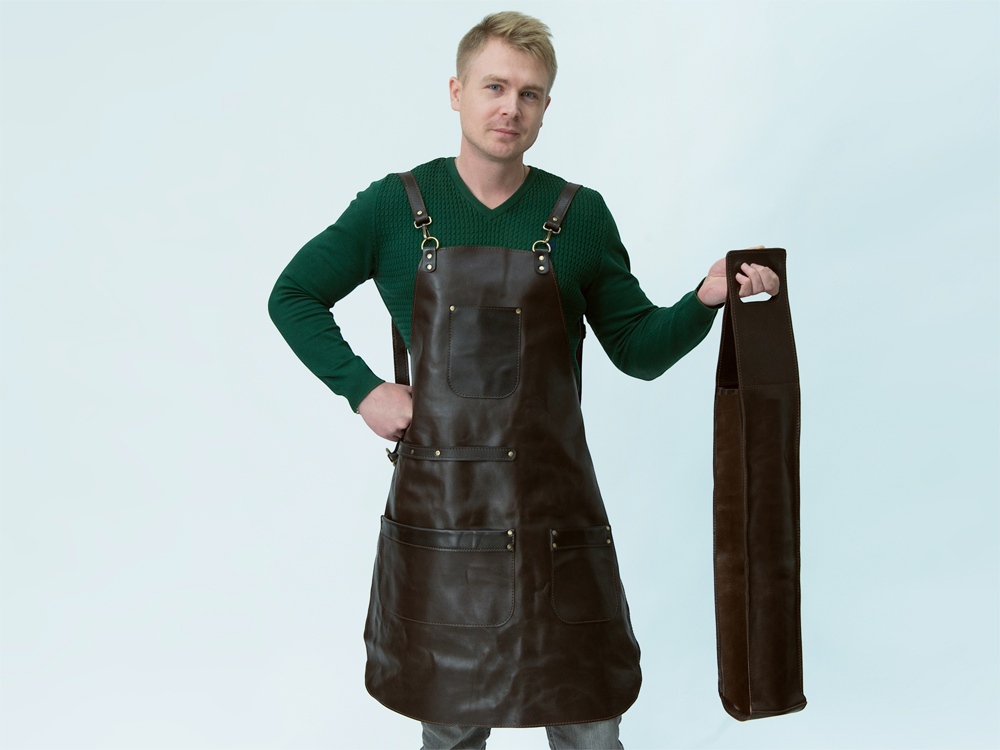 Представляем вам набор, состоящий из фартука из натуральной кожи и футляра-тубуса, который обеспечит надежную защиту и комфорт во время готовки!