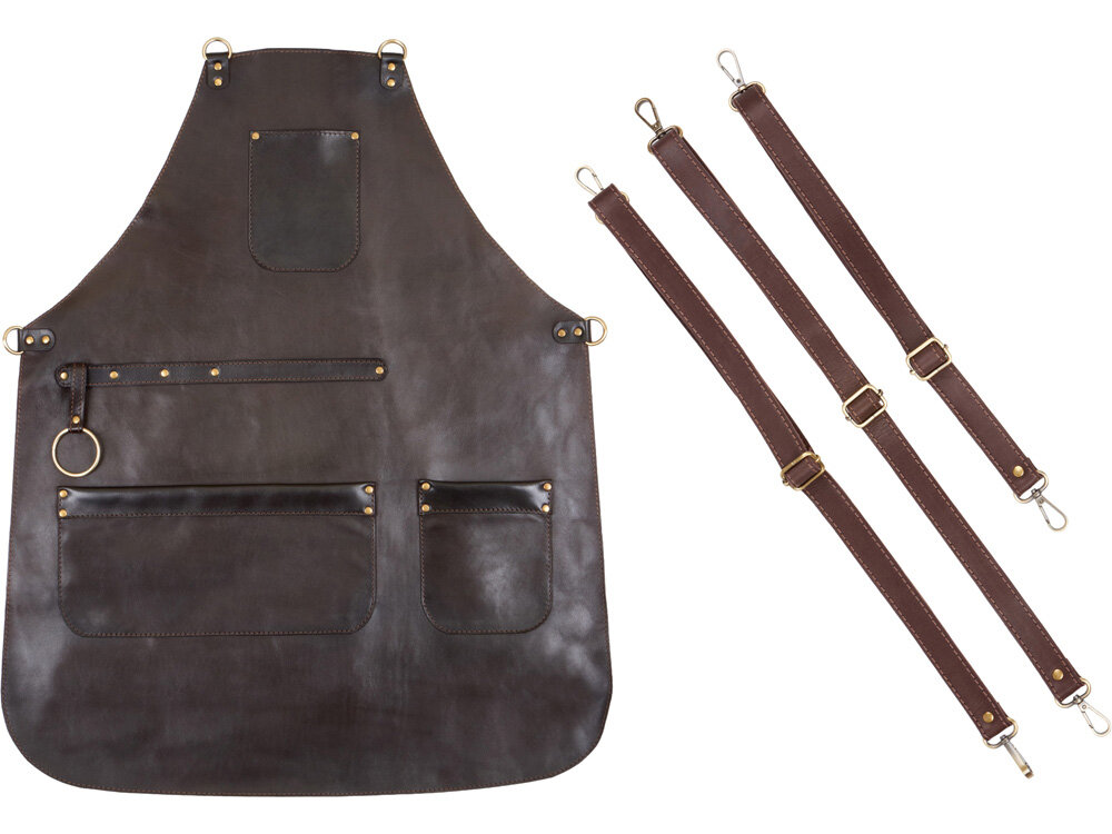 - Цвет: темно-коричневый фартук с темно-коричневыми ремнями.
