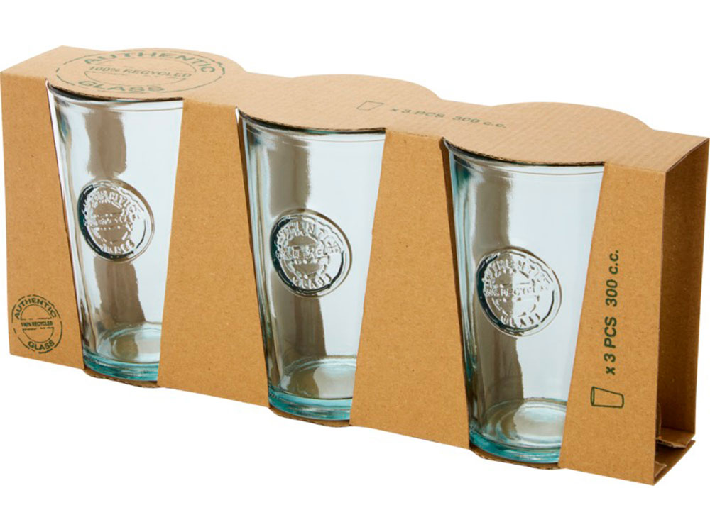 Набор из 3 предметов объемом 300 мл Copa, изготовленных из переработанного стекла с логотипом компании - отличный способ заявить вашу корпоративную идентичность.