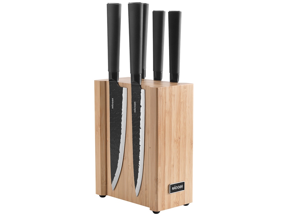 Компания «Эклектика BY» осуществляет нанесение логотипа на сувенирную продукцию: Набор из 5 кухонных ножей на магнитном блоке, NADOBA, серия HORTA. Арт. 462317