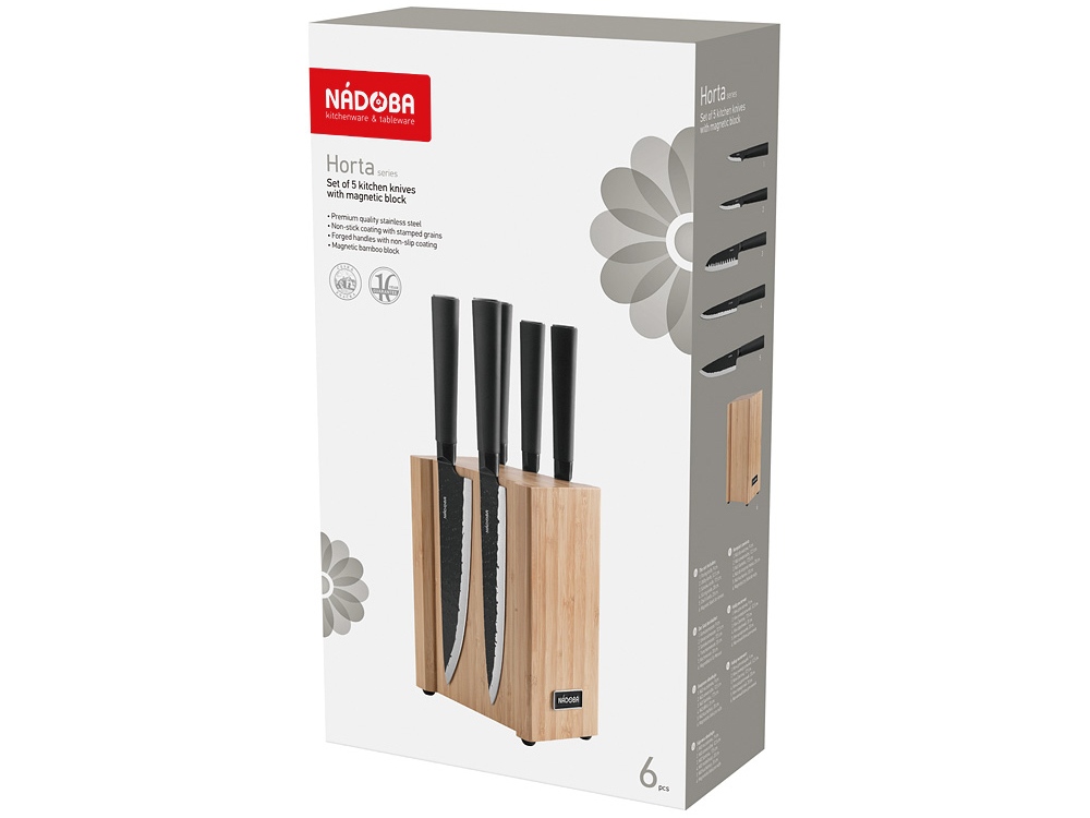 Набор из 5 кухонных ножей на магнитном блоке, NADOBA, серия HORTA с логотипом компании - отличный способ заявить вашу корпоративную идентичность.