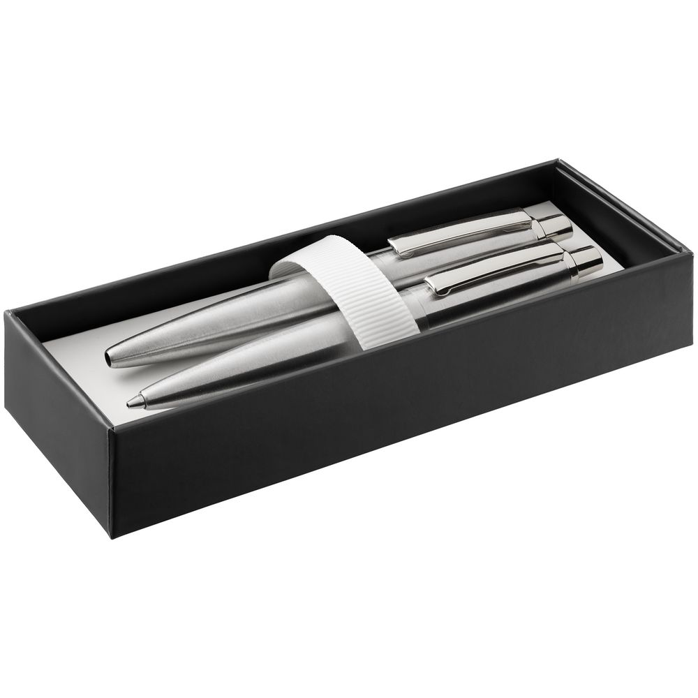 Главная ->Корпоративные подарки и рекламные сувениры на складе -> Ручки под логотип -> Наборы ручек -> Набор из механического карандаша и ручки Poetica, серебристый