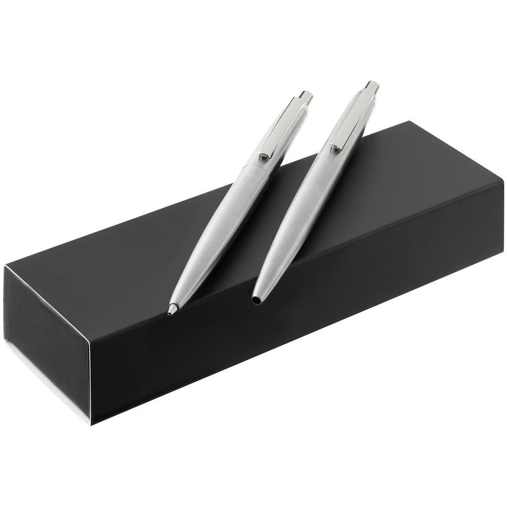 Набор из механического карандаша и ручки Poetica, серебристый с логотипом компании - отличный способ заявить вашу корпоративную идентичность.
