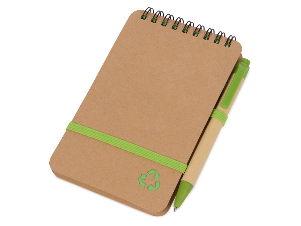 Компания «Эклектика BY» осуществляет нанесение логотипа на сувенирную продукцию: Набор канцелярский с блокнотом и ручкой Masai, 70 л. нелинованных, зеленое яблоко. Арт. 447945