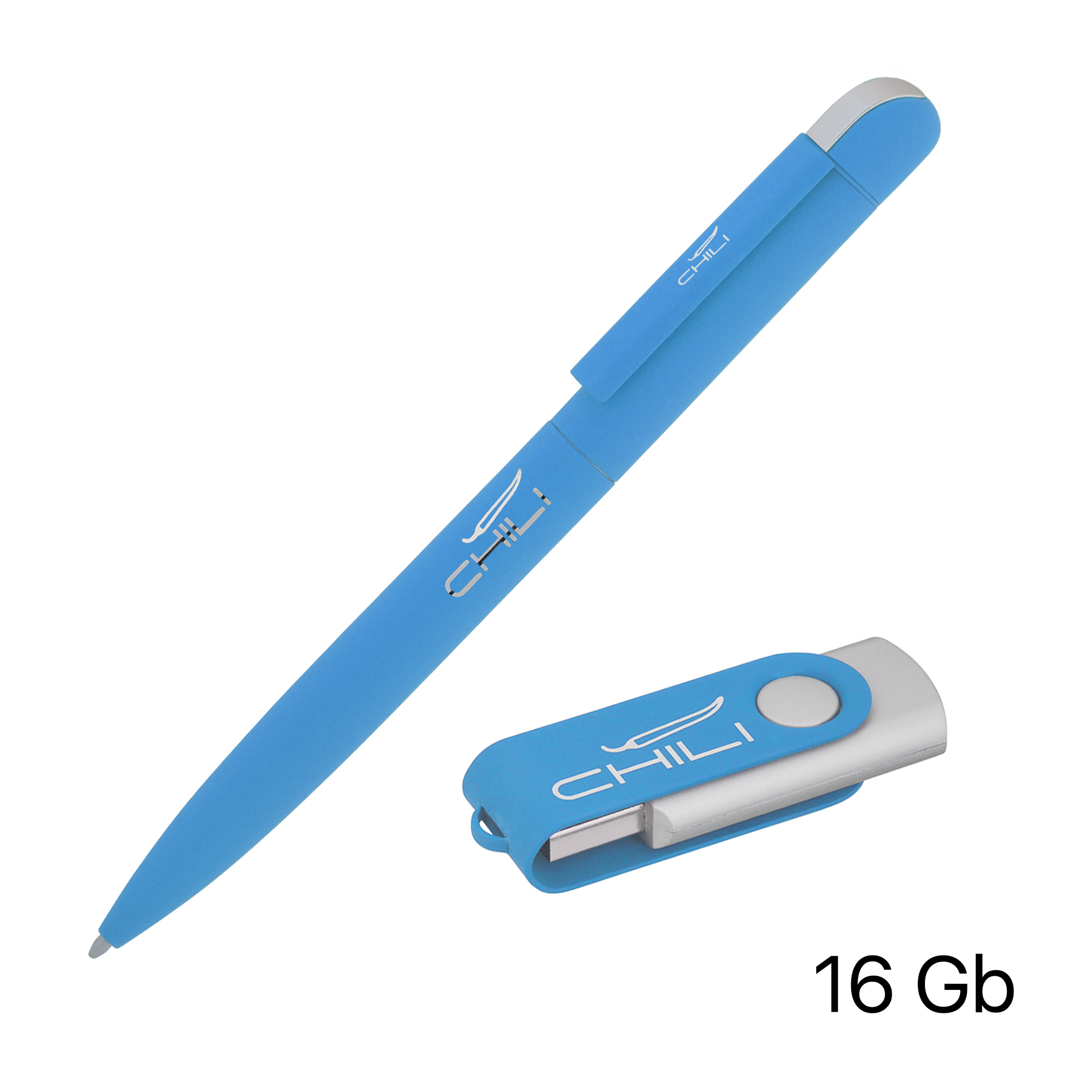 Набор ручка + флеш-карта 16 Гб в футляре, покрытие soft touch с логотипом компании - отличный способ заявить вашу корпоративную идентичность.