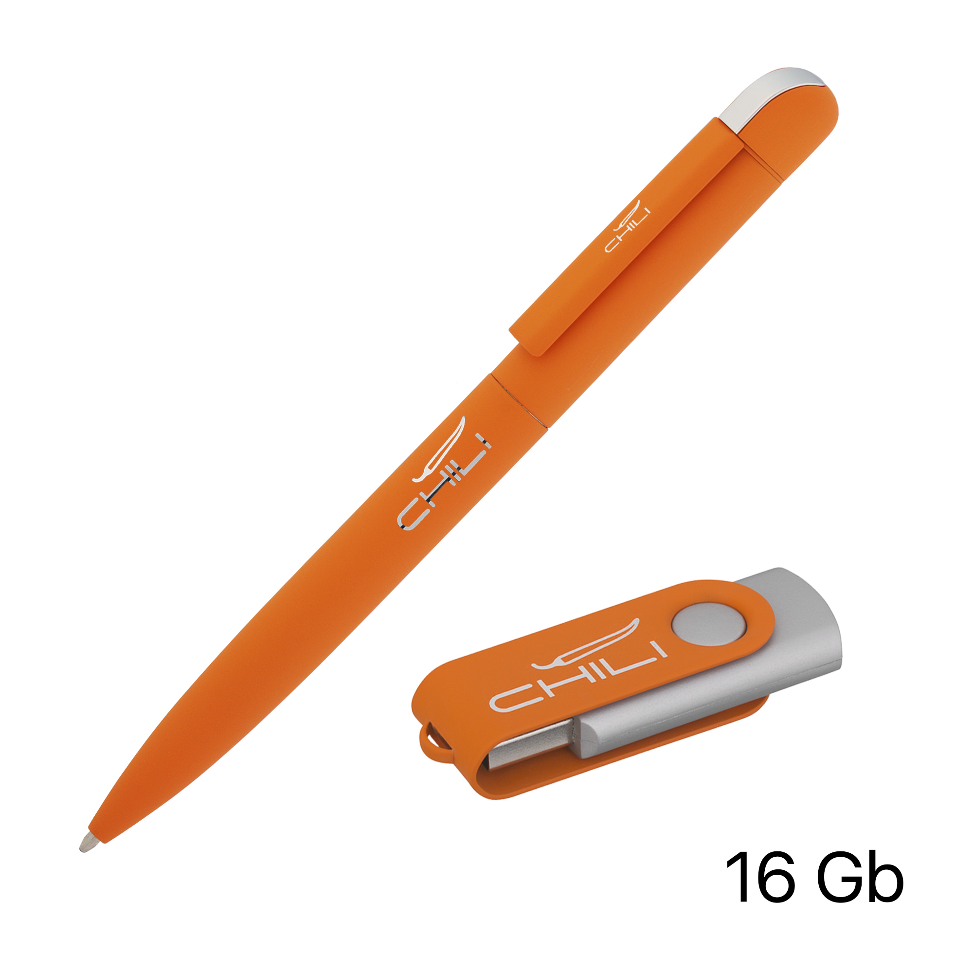 Набор ручка + флеш-карта 16 Гб в футляре, покрытие soft touch с логотипом компании - отличный способ заявить вашу корпоративную идентичность.