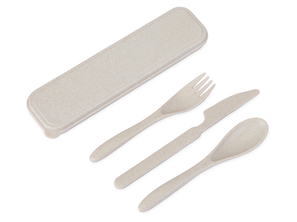 Компания «Эклектика BY» осуществляет нанесение логотипа на сувенирную продукцию: Набор столовых приборов Ron из бамбукового волокна, бежевый. Арт. 432403