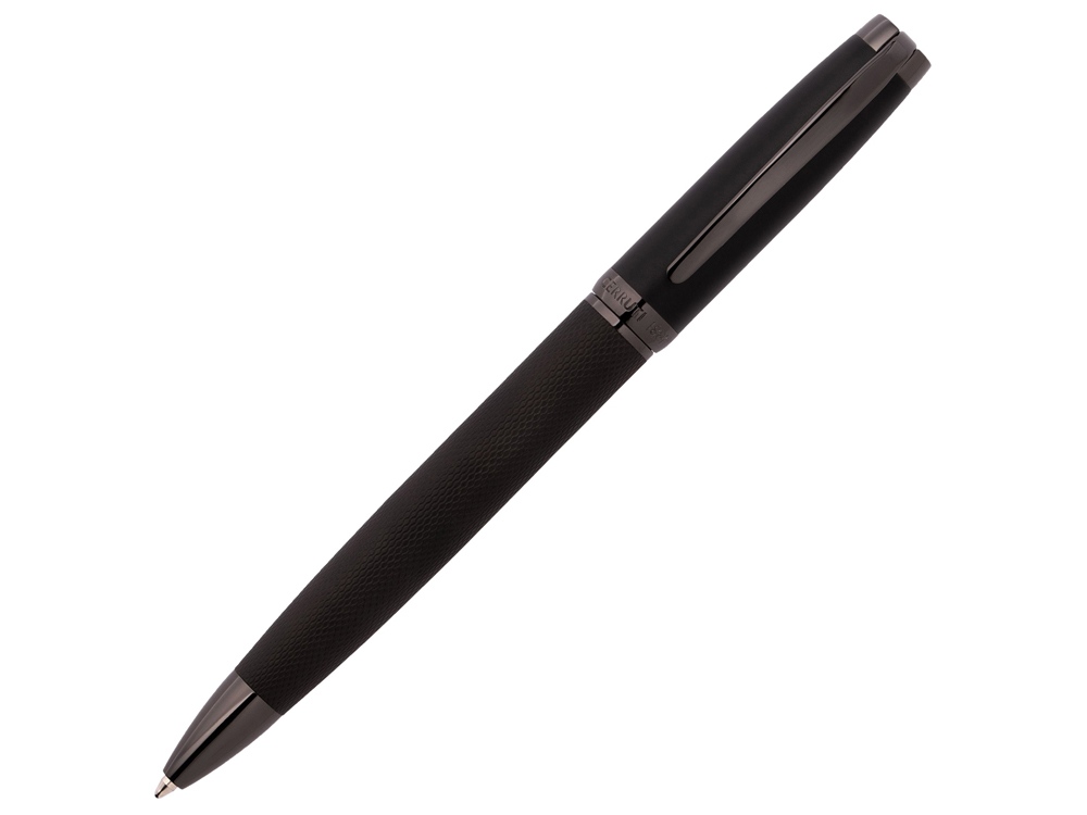 - шариковая авторучка в матово-чёрном корпусе с отделкой из оружейного металла с поворотным механизмом,