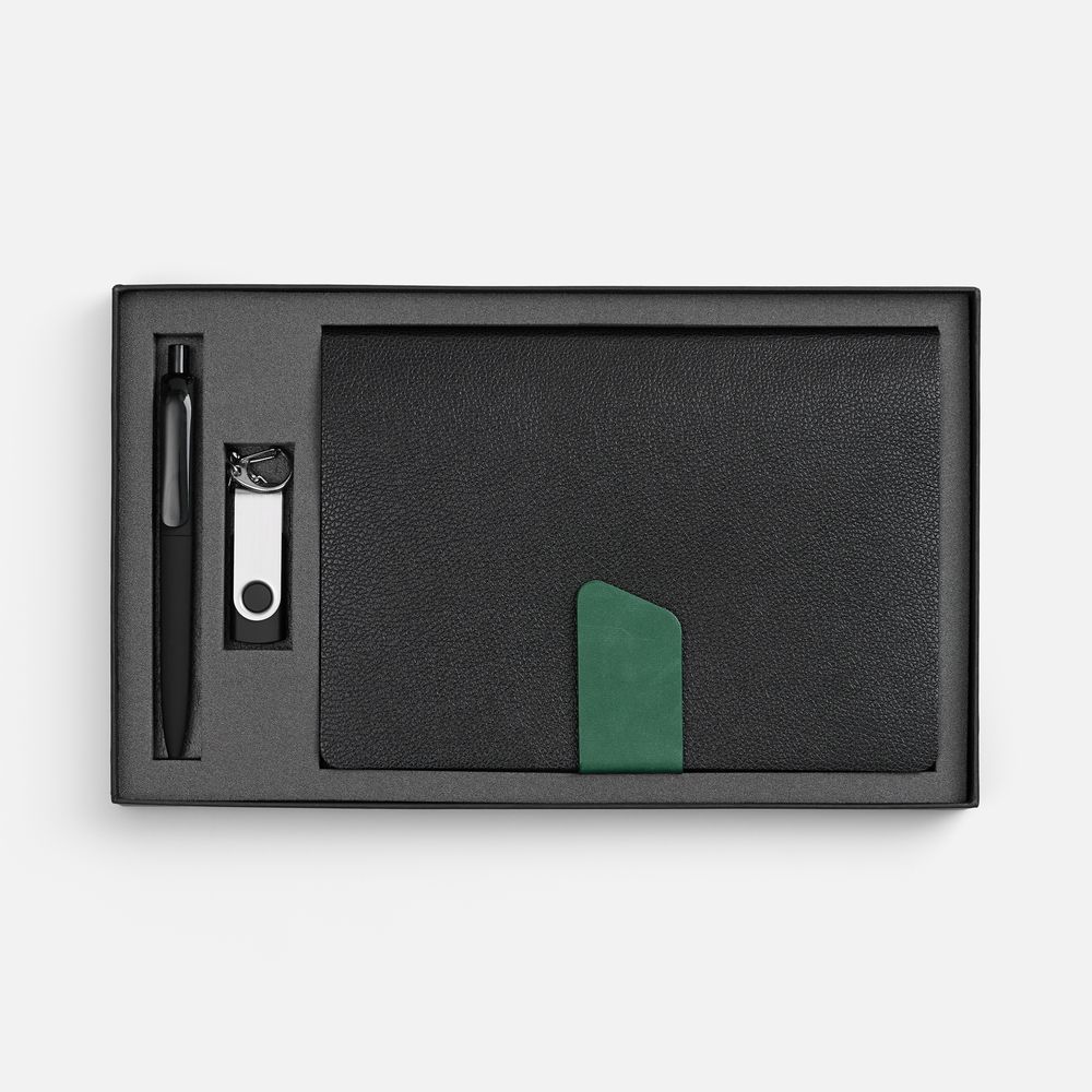 Главная ->Корпоративные подарки и рекламные сувениры на складе -> Ежедневники для работы -> Наборы с ежедневниками -> Набор Boom Memory, черный с зеленым