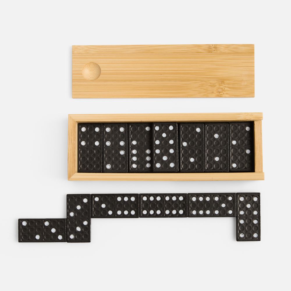 Материал: плед - флис, плотность 180 г/м?; набор бокалов - пластик; футляр для домино - бамбук; костяшки - МДФ; сумка - хлопок 100%, плотность 220 г/м?; саржа