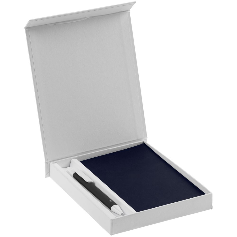 Миниатюрный набор со стильным ежедневником в гибкой обложке с покрытием софт-тач и ручкой интересной формы. Все составляющие сложены в компактную коробку с ложементом, которая придает набору аккуратность.