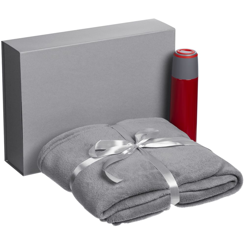 Материал: термос - нержавеющая сталь, корпус; пластик, крышка; плед - полиэстер 100%, длинноворсный флис, 220 г/м?; коробка - переплетный картон
