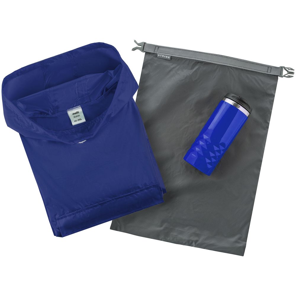 Материал: мешок - нейлон; дождевик - полиэстер; термостакан - пластик, нержавеющая сталь