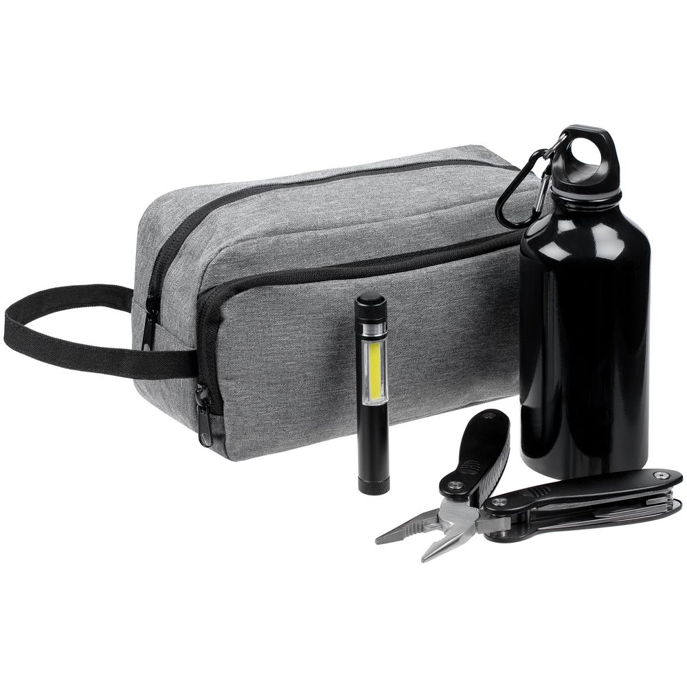 Материал: мультитул, фонарик, бутылка - алюминий; полиэстер