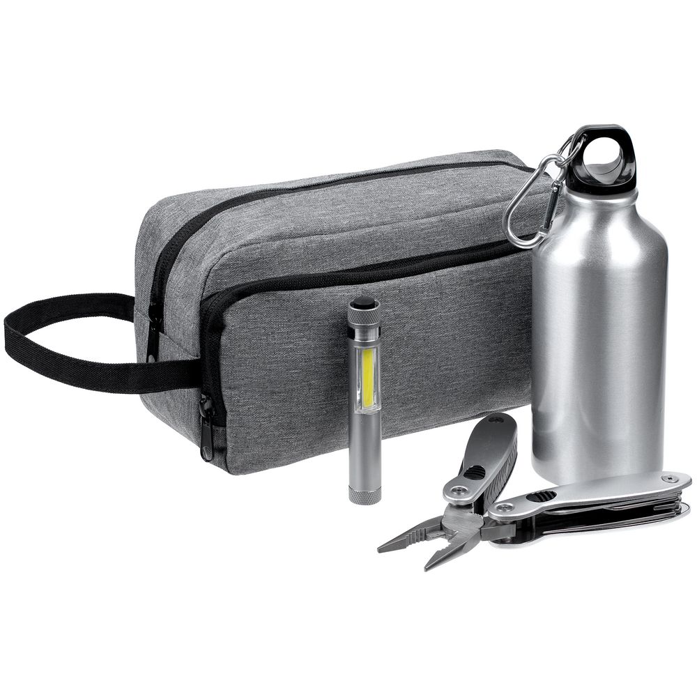 Материал: мультитул, фонарик, бутылка - алюминий; несессер - полиэстер