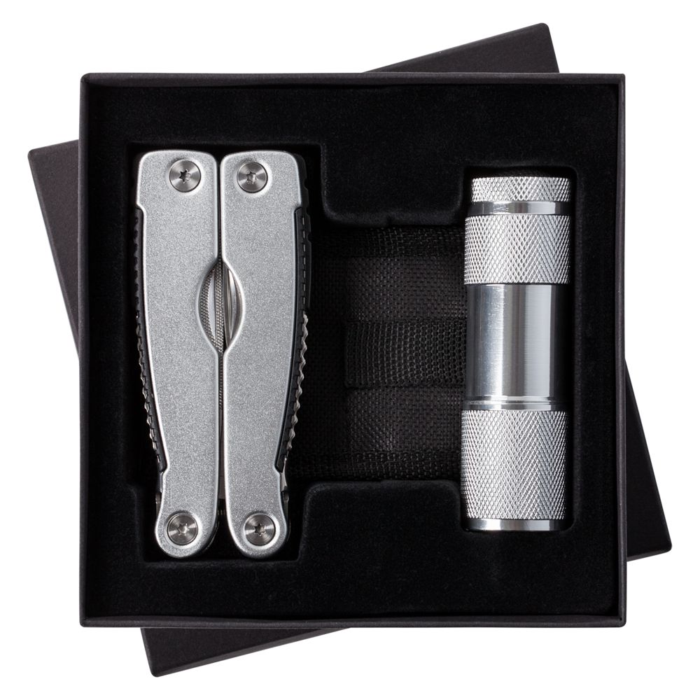 Главная ->Корпоративные подарки и рекламные сувениры на складе -> Наборы подарочные -> Подарочные наборы для мужчин -> Набор Handmaster: фонарик и мультитул, серебристый