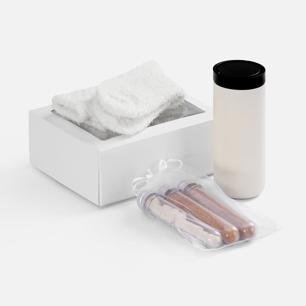Домашний и такой уютный набор Heimen демонстрирует триумф тепла и комфорта. Чашка ароматного какао с нежными маршмеллоу в стильном термостакане, нежные объятия пушистых носков на ногах — то, что нужно для расслабляющего и умиротворяющего вечера.