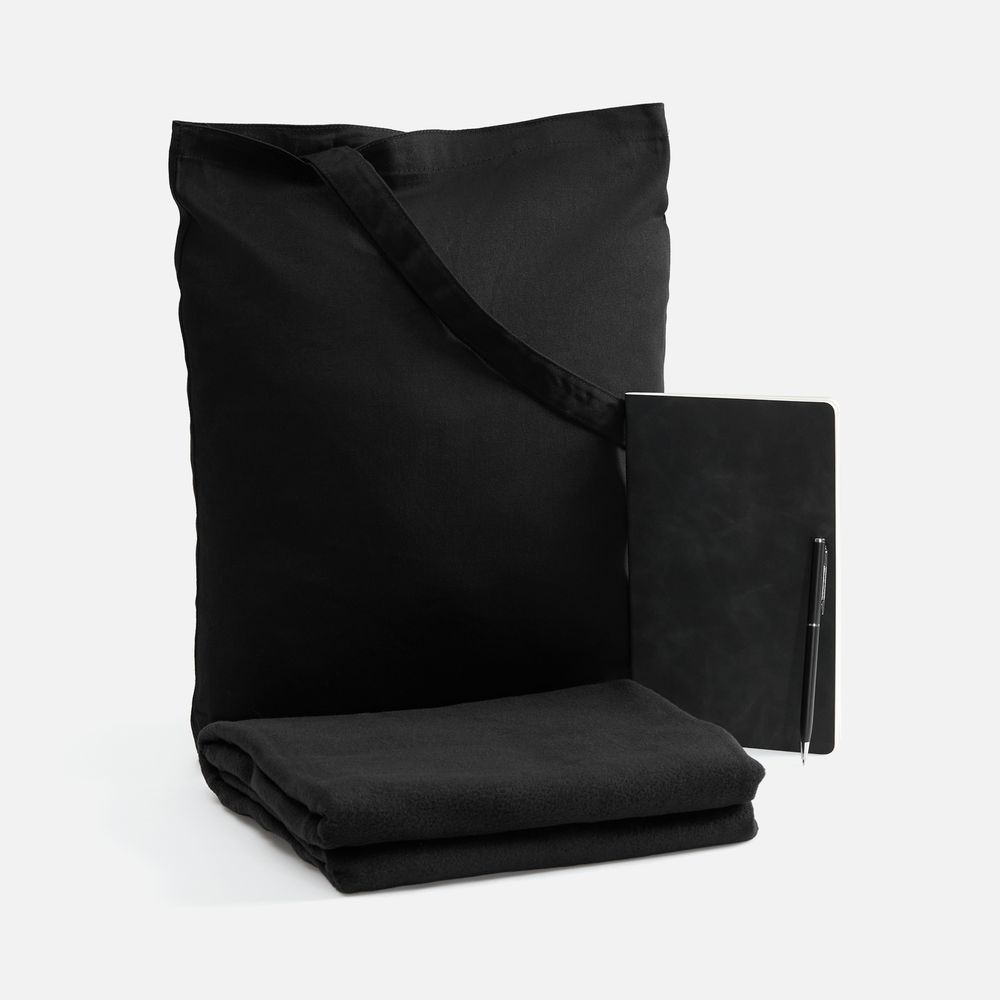 Набор с основной канцелярией и пледом — классика жанра в уютном исполнении. С компактным блокнотом под рукой будет удобно делать заметки в любое время, а легкий флисовый плед позволит выразить самые теплые пожелания.