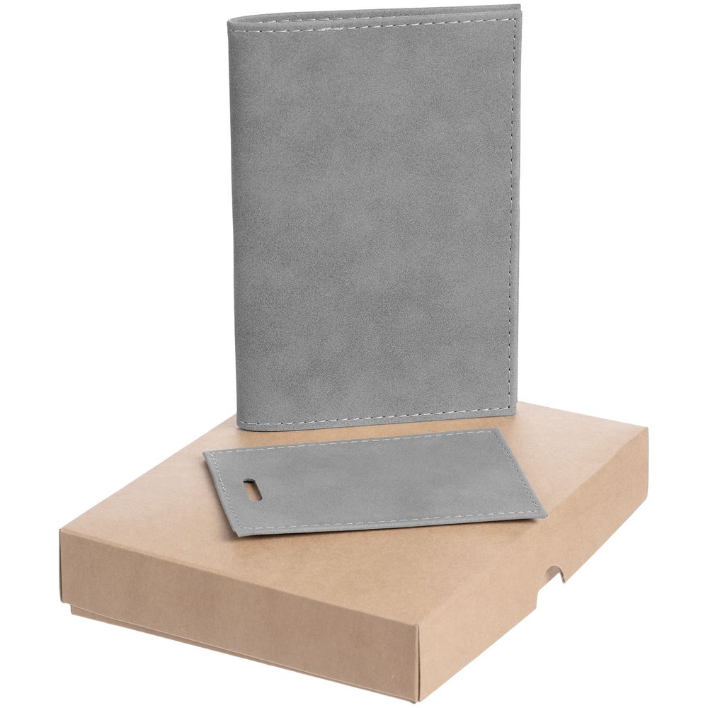 Набор Nubuk Travel, серый с логотипом компании - отличный способ заявить вашу корпоративную идентичность.