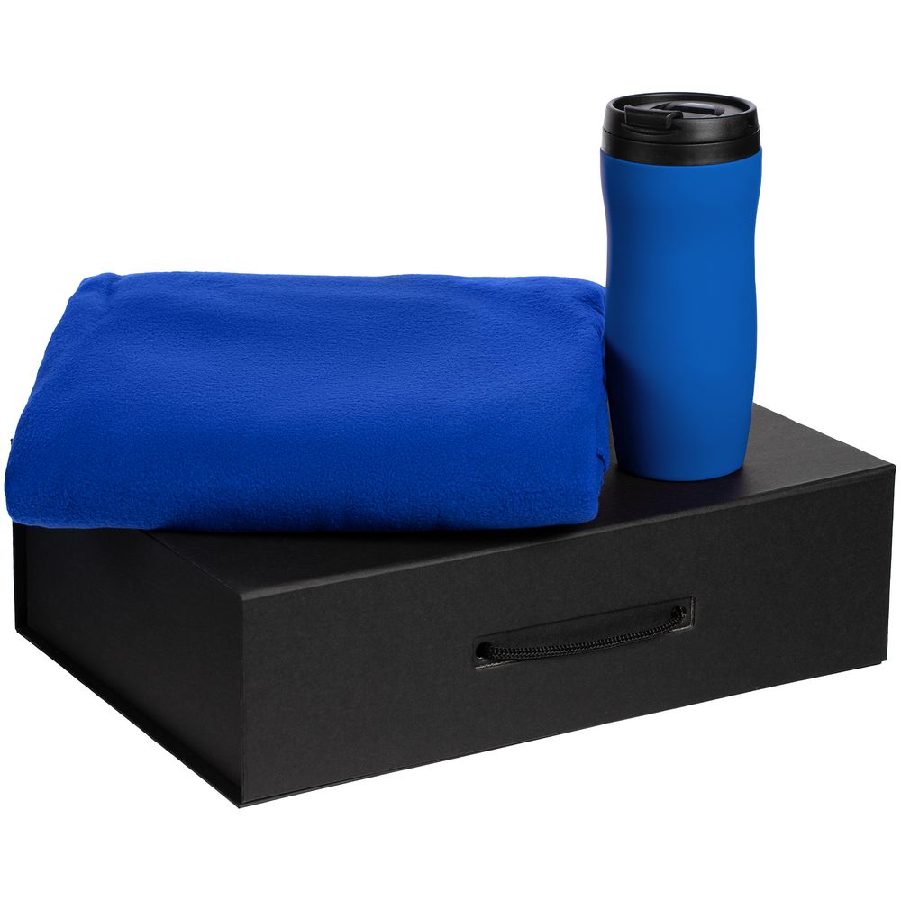 Материал: крышка, внутренняя колба - пластик; корпус - нержавеющая сталь; покрытие софт-тач; плед - флис, плотность 180 г/м?; коробка - переплетный картон; наполнитель - бумага