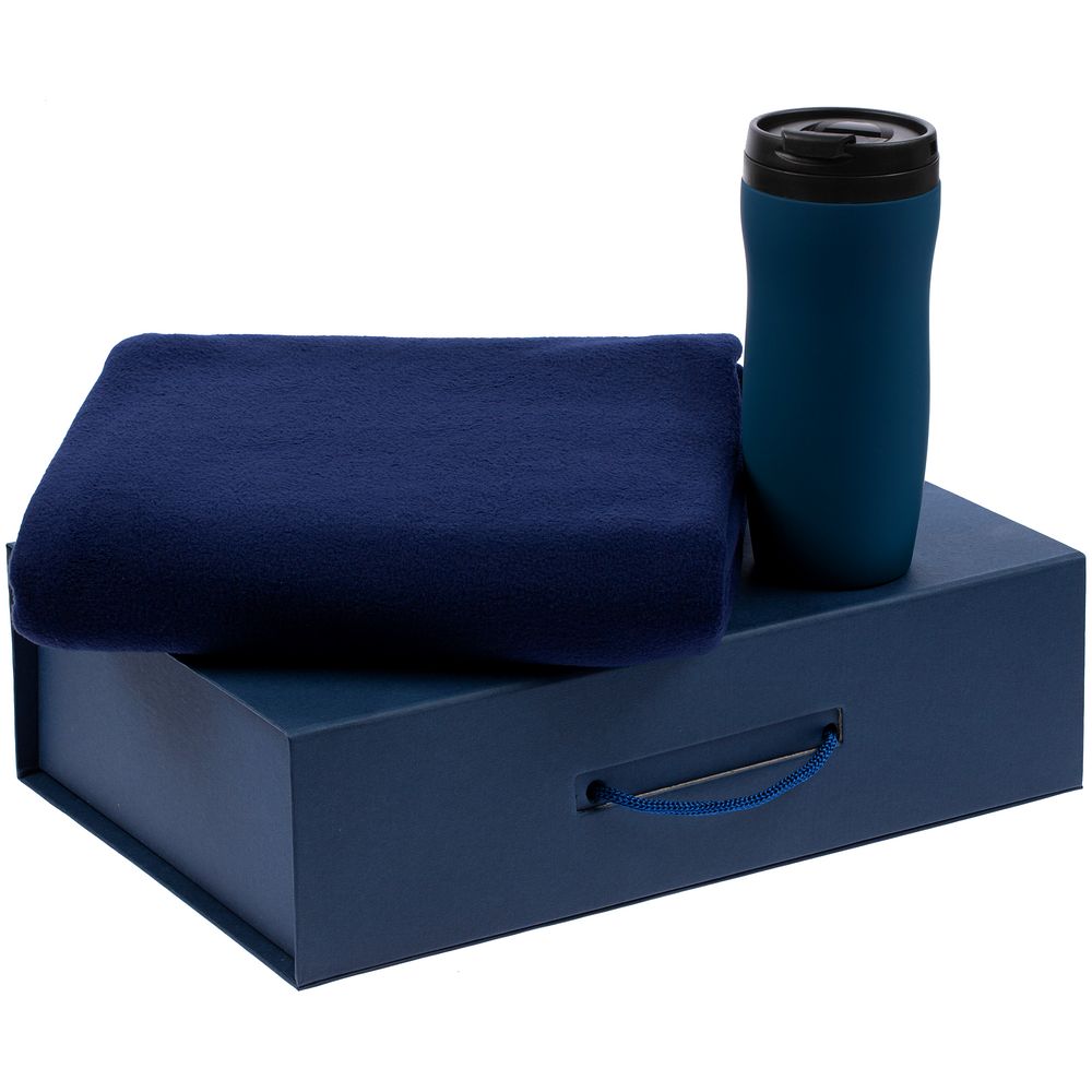 Материал: термостакан - пластик, крышка, внутренняя колба; нержавеющая сталь, корпус; покрытие софт-тач; плед - флис, плотность 180 г/м?; коробка - переплетный картон; наполнитель - бумага