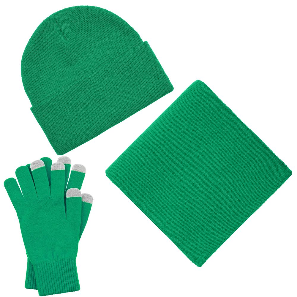 В комплект входят двухслойная шапка с регулируемым отворотом и легкий однослойный шарф из мягкой акриловой пряжи, сохраняющие тепло и защищающие от ветра, а также эргономичные перчатки со специальными токопроводящими волокнами на кончиках пальцев, позволяющие свободно пользоваться смартфоном даже в холодную погоду. Универсальная цветовая гамма и лаконичный дизайн делают набор органичным дополнением к любой верхней одежде.
