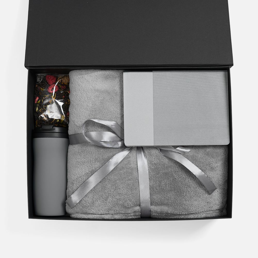 Набор Vale Plush, серый с логотипом компании - отличный способ заявить вашу корпоративную идентичность.