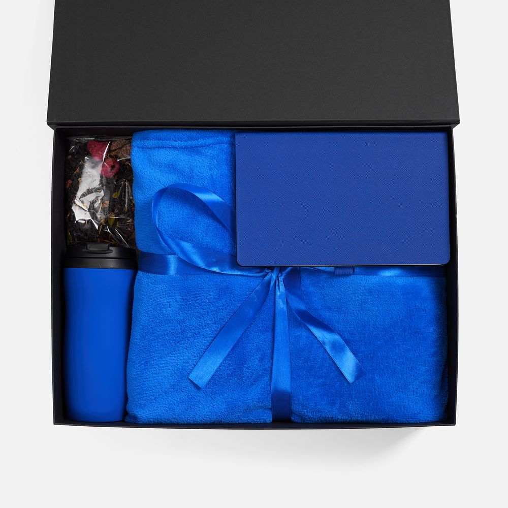Набор Vale Plush, синий с логотипом компании - отличный способ заявить вашу корпоративную идентичность.