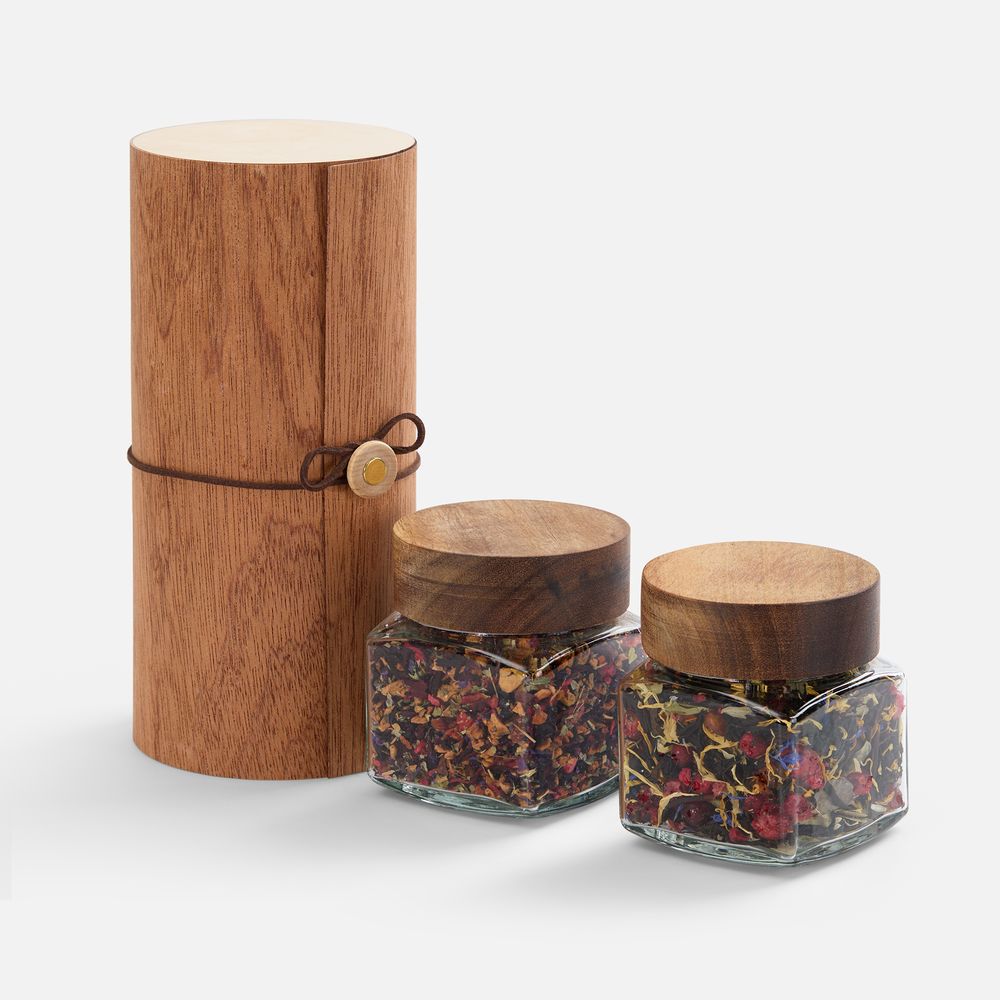 Премиальный набор из двух видов чая. «Сила тайги» раскрывается глубокой, древесно?хвойной насыщенностью, а «Ягодная поляна» — свежей ягодной кислинкой и ароматной фруктовостью. Натуральные материалы упаковки и лаконичная подача подчеркивают утонченный характер набора.